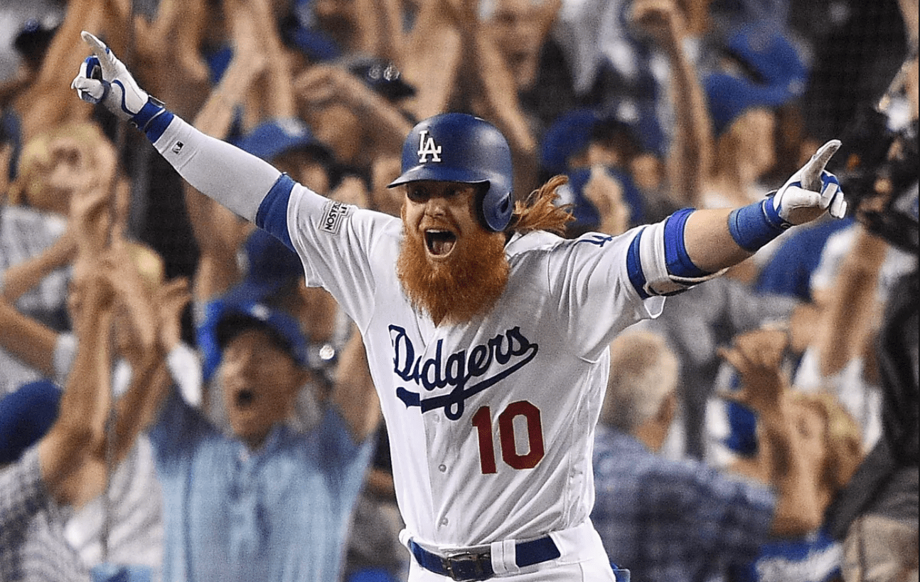 Sunday night, Justin Turner walked into the Dodgers’ history books with his 9th inning walk-off home run. A 1-1 score going into the bottom of the ninth inning, most of the game revolved around the pitching, with only seven hits allowed, total. And then, with one out remaining and a seasoned closer on the mound, Turner entered the batter’s box. While his impressive playoff beard and flowing red locks might have immediately grabbed your attention, he was, in fact, the last person the Cubs wanted at the plate, as one of the Dodgers best hitters. He certainly did not disappoint, launching a three-run homer into the stands, propelling the Dodgers to a 4-1 victory and a 2-0 lead in the series. If that wasn’t remarkable enough, 29 years ago, to the day, was the last time the Dodgers won a postseason game on a walk-off home run. On October 15th, 1988, during the World Series, Kirk Gibson blasted a home run that brought the LA Dodgers a Game 1 win. A hit that our very own Justin Turner vividly remembers watching, at the age of 3, as an avid Dodgers fan. Baseball, for a one-time fan and now player, comes full circle. Having also played Tuesday night, the series is now 3-0 in favor of the Dodgers.